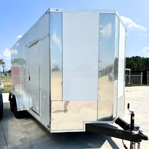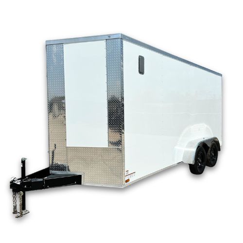 This 16-foot long trailer is robust! Its great size makes it perfect for many uses and this tandem axle trailer holds more weight! This trailer even comes with electric brakes! This trailer measures 7X16 and sits on a tandem axle. Comes in choices of colors and add-on options. Top-quality construction.