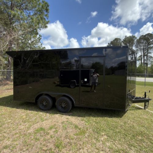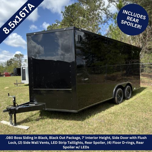 8.5×16 Tandem Axle Black Blackout Enclosed Trailer with Rear Spoiler