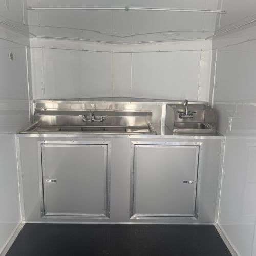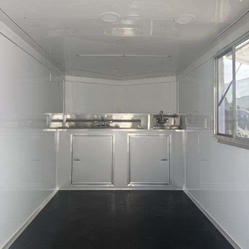 This Titanium Cargo 7×14 Silver Frost Concession Trailer has the water package, as well as a fully finished interior! Top-quality construction by Titanium Cargo Trailers.