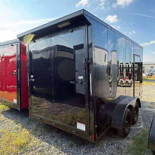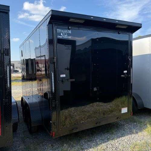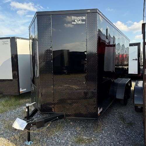 This Titanium Cargo 7×14 Tandem Axle Black Blackout Enclosed Cargo Trailer has a Rear Spoiler! Top quality construction by Titanium Cargo Trailers