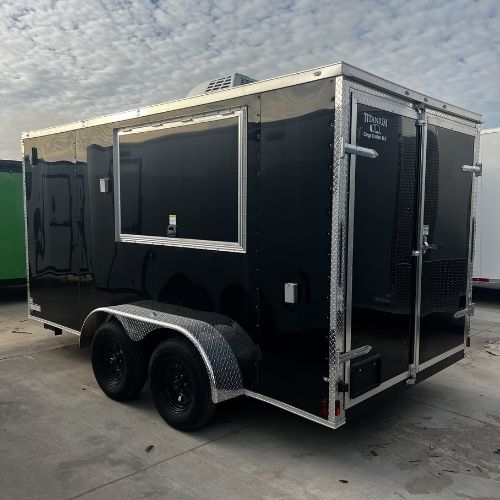 Titanium Cargo 7×14 Tandem Axle Black Enclosed Concession Trailer