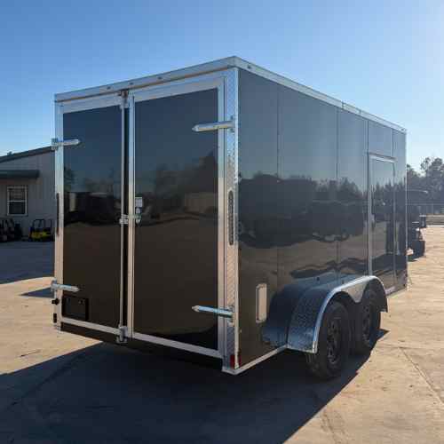 Titanium Cargo 7×14 Tandem Axle Black Enclosed Trailer with Barn Doors!   Top-quality construction by Titanium Cargo Trailers.