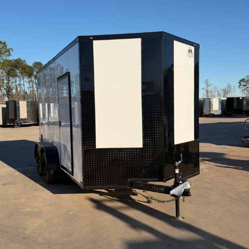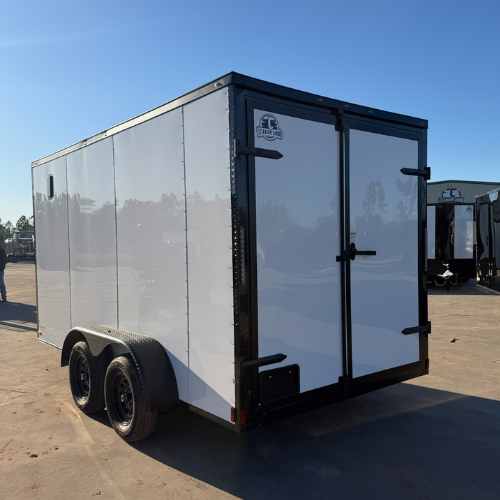 Titanium Cargo 7×14 Tandem Axle White Blackout Enclosed Trailer with Barn Doors!   Top-quality construction by Titanium Cargo Trailers.