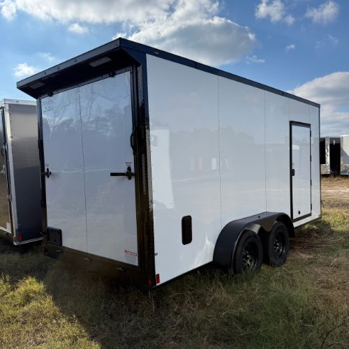 This Titanium Cargo 7×16 Tandem Axle White Blackout Enclosed Cargo Trailer comes with a Rear Spoiler!  Top-quality construction by Titanium Cargo Trailers.