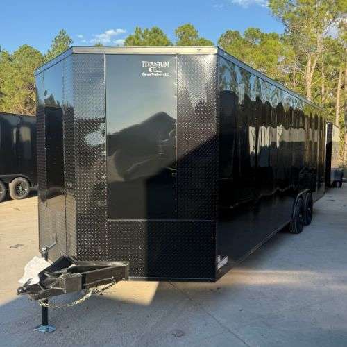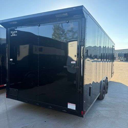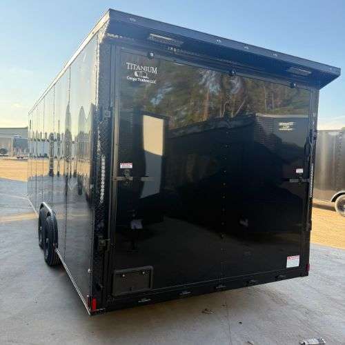 This Titanium Cargo 8.5×24 Tandem Axle Black Enclosed Trailer with Blackout Package comes with a rear spoiler!