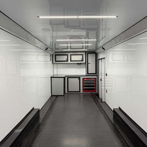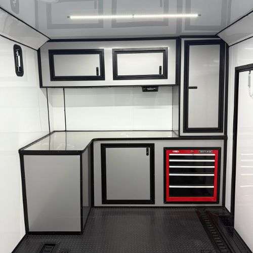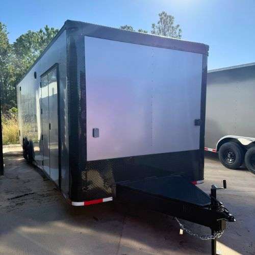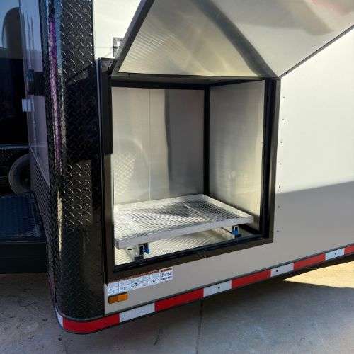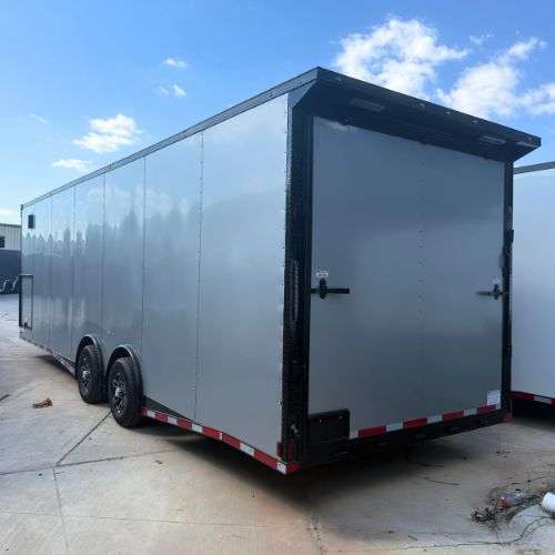 This Titanium Cargo 8.5×28 Tandem Axle Silver Enclosed Race Trailer with Blackout Package is fully loaded! Top-quality construction by Titanium Cargo.