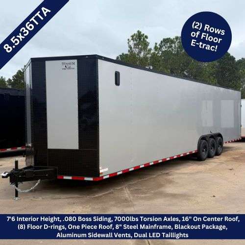 Titanium Cargo 8.5×36 Triple Axle Silver Frost with Blackout Package Top-quality construction by Titanium Cargo Trailers.